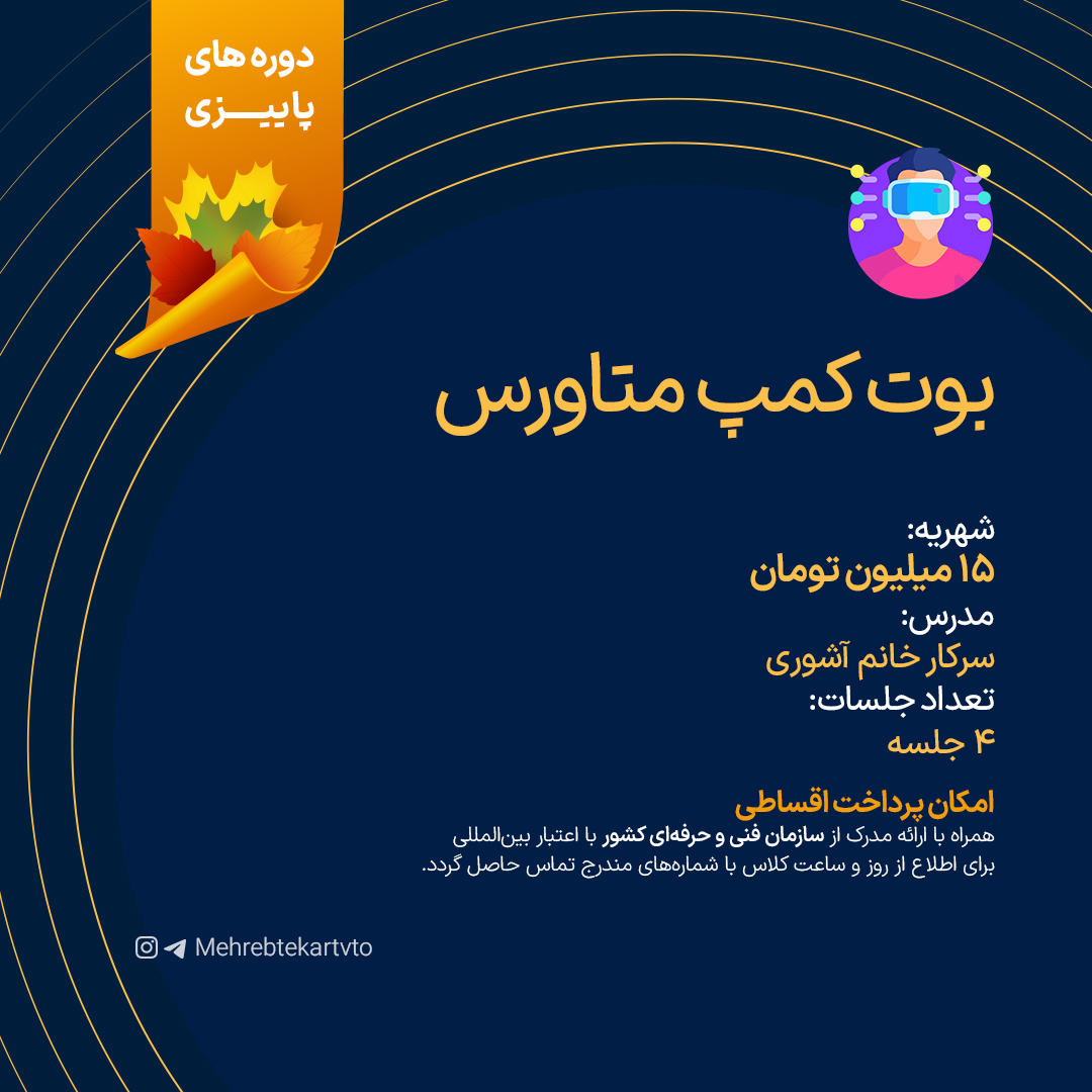 بوت کمپ متاورس مهرابتکار با توجه به شرایط دانشجویان به صورت حضوری و آنلاین برگزار میشود و امکان شرکت از هر نقطه کشور فراهم است.