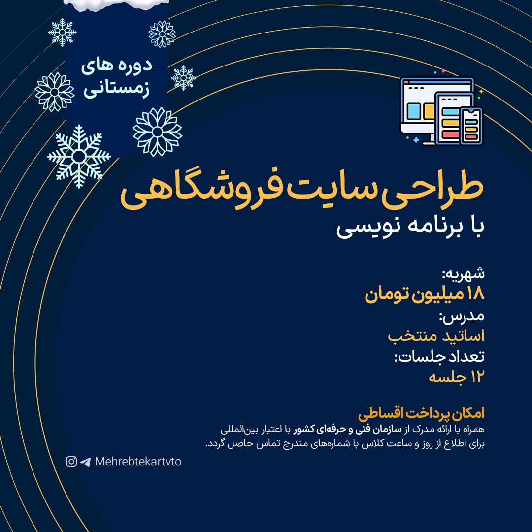 آموزشگاه مهرابتکار با سالها تجربه در حوزه آموزش برنامهنویسی و طراحی سایت، دورهای تخصصی برای طراحی سایت فروشگاهی با برنامهنویسی ارائه میدهد که در ادامه به بررسی کامل آن خواهیم پرداخت.