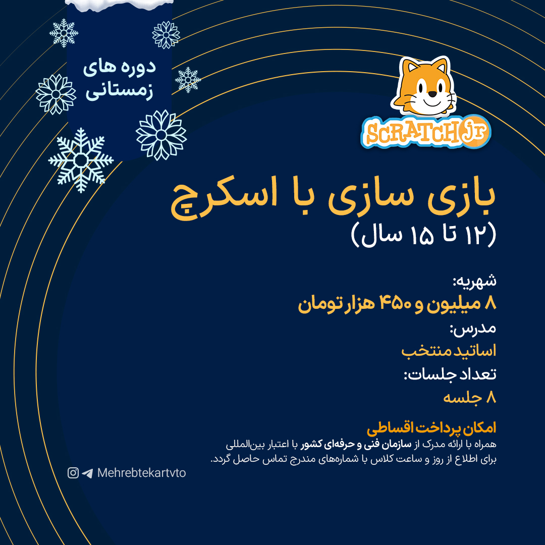 دوره بازی سازی با اسکرچ در آموزشگاه مهرابتکار، دریچهای است به دنیای خلاقیت، منطق و آینده. با یادگیری این مهارت در فضایی شاد و حرفهای، فرزند شما نهتنها یک بازیساز میشود، بلکه با پایههای مهم دنیای تکنولوژی آشنا خواهد شد.